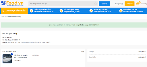 Như vậy là sau 6 bước đơn giản, bạn đã hoàn tất việc đặt đơn hàng trên website của 5sFood. Thông tin về đơn hàng của bạn sẽ nhanh chóng được nhân viên của 5sFood cập nhật và đảm bảo thời gian giao hàng cho khách hàng.