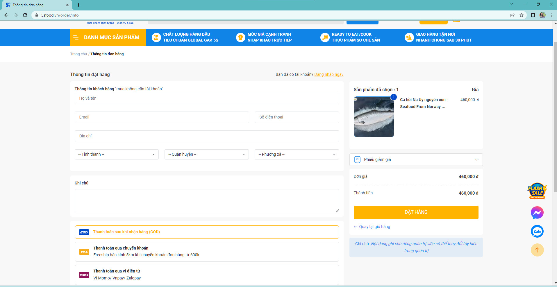 Cách 4: Đặt mua hàng trực tiếp trên website https://5sfood.vn/