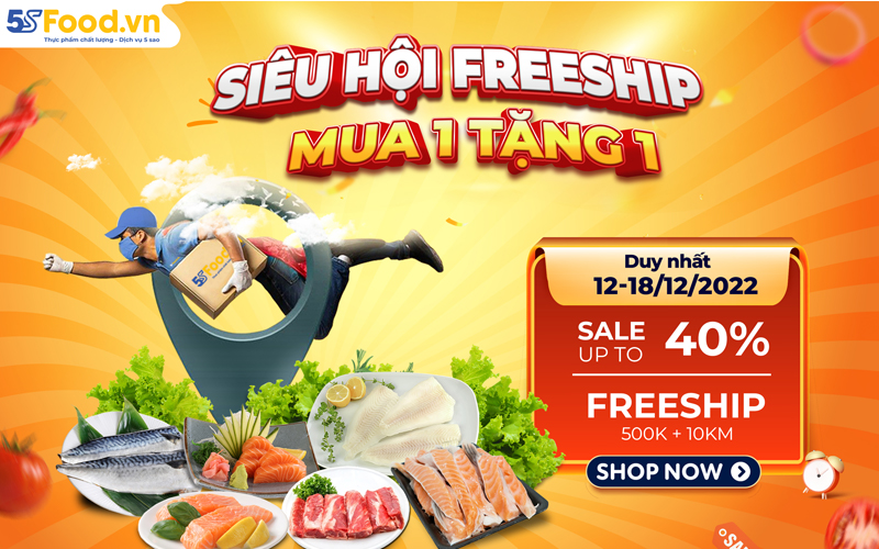 Chương trình SIÊU HỘI FREESHIP sẽ diễn ra ngay từ ngày 12/12 tới hết ngày 18/12/2022 tại hệ thống cửa hàng thực phẩm cao cấp 5sFood với chi tiết như sau: